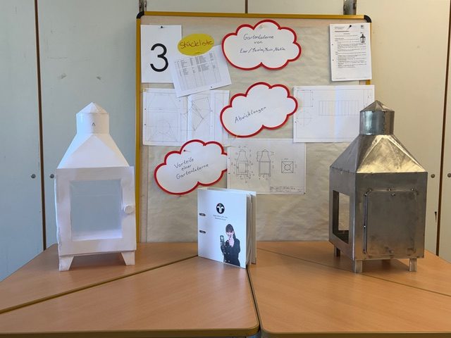 Und als Highlight brachte ein Azubi den Entwurf der Laterne seiner Gruppe als Prototyp mit. Danke an die Firma Wilhelm-Schmitz GmbH aus Leverkusen für ihr Engagement