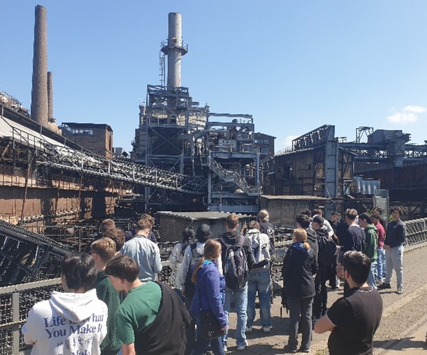 Letzte Woche waren wir mit unserer Berufsschulklasse auf Klassenfahrt am Bostalsee (12. bis 16.05.2025) im Saarland. In dieser Zeit haben wir einen Ausflug zur Völklinger Hütte gemacht. Für viele von uns war das der erste richtige Einblick in die Geschichte und Technik der Stahlindustrie – und es war echt spannend, mal zu sehen, wie früher Eisen produziert wurde.