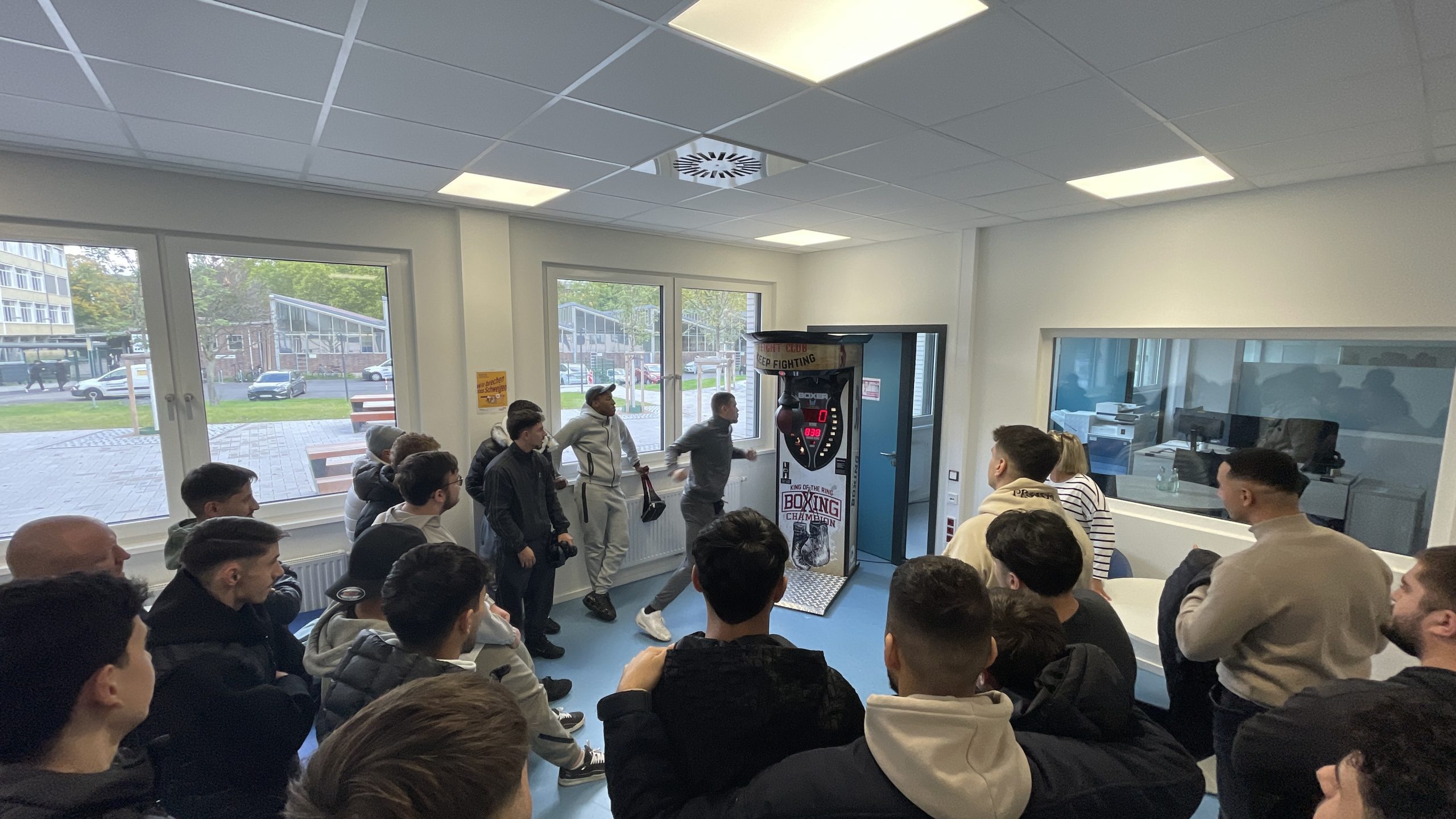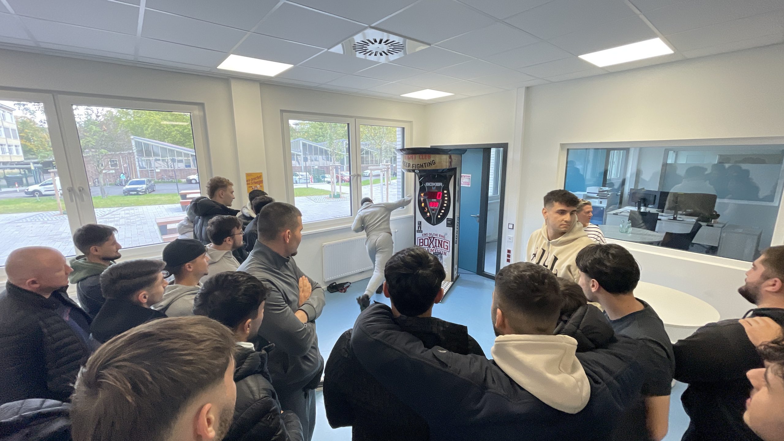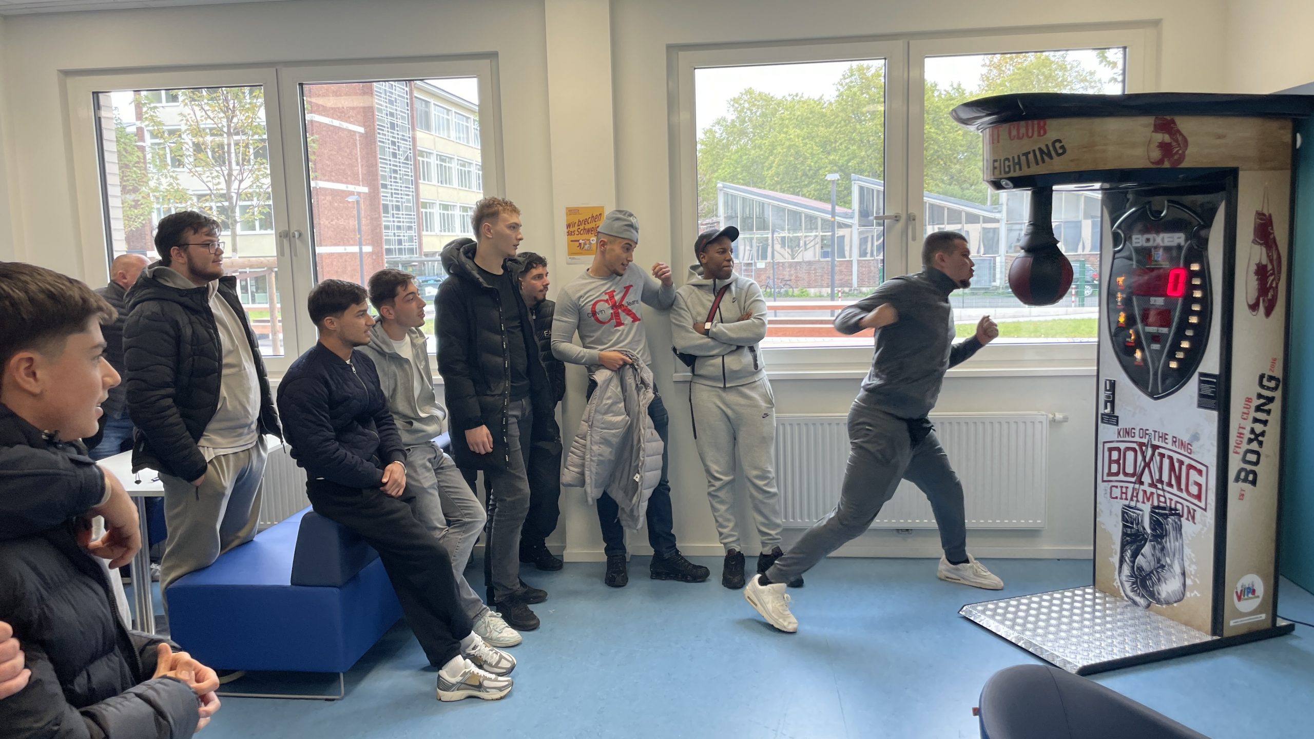 Am Donnerstag, den 09.10., war es endlich soweit: Unser Boxautomat ist an unserem Schulstandort in Deutz eingetroffen! Die Begeisterung unter den Schülern war riesig – die kostenlosen Coins waren blitzschnell aufgebraucht und der Wettkampfgeist sofort geweckt. Mit beeindruckenden Ergebnissen wurde kräftig zugeschlagen – der aktuelle Highscore liegt bei 838! Wer die 800er-Marke knackte, durfte sich über anerkennendes Staunen seiner Mitschüler freuen.Doch eines ist klar: Nicht nur Kraft, sondern auch Technik entscheidet über den Sieg.