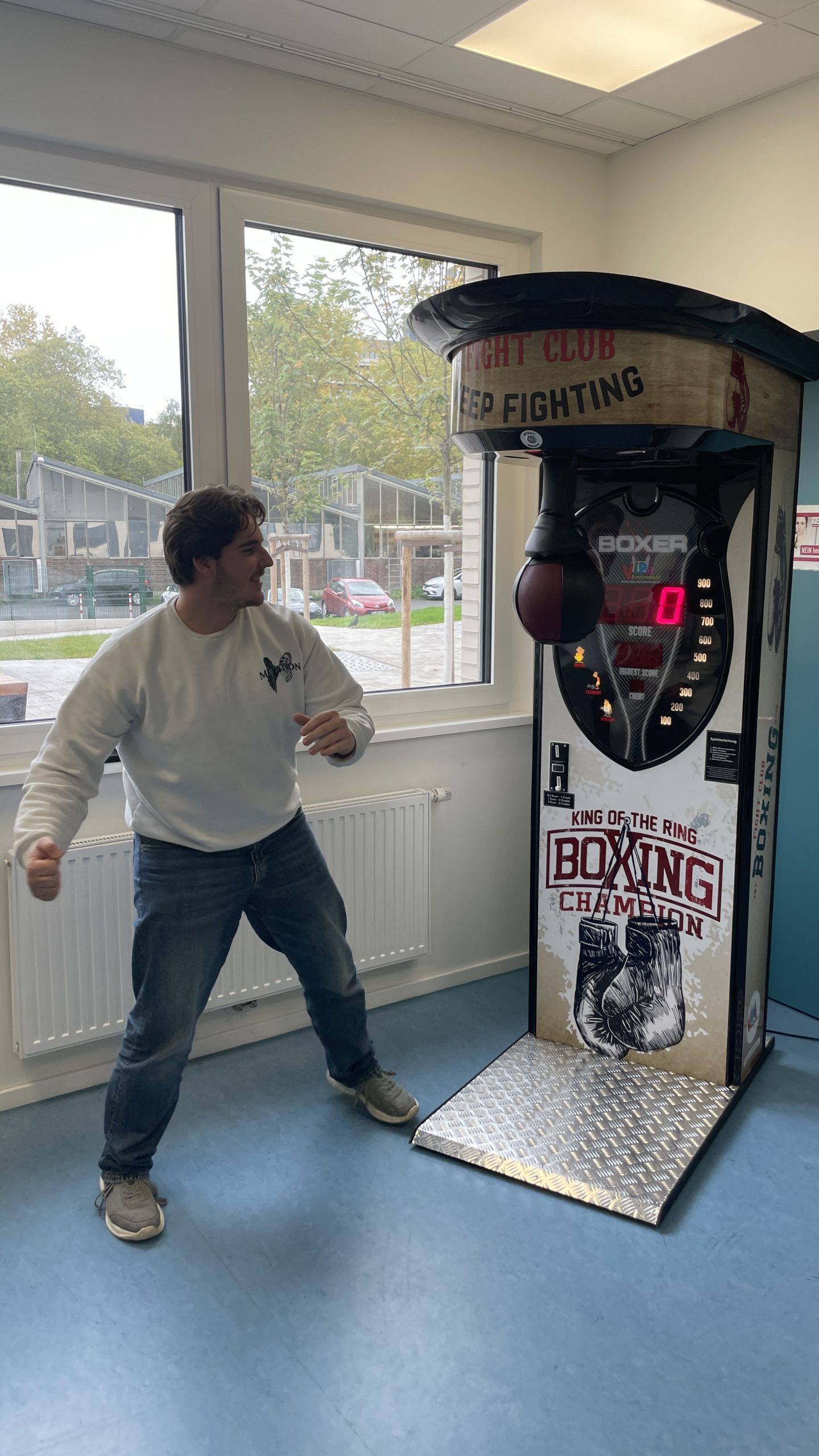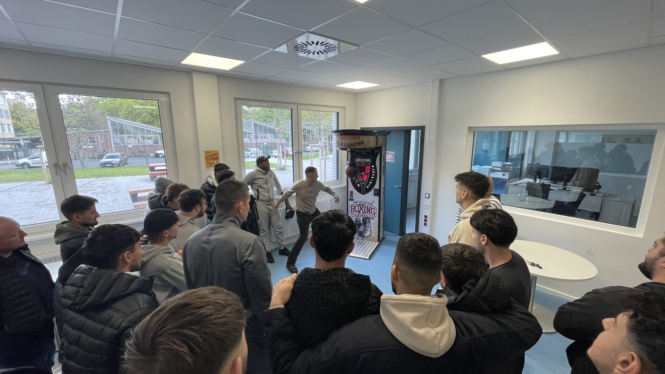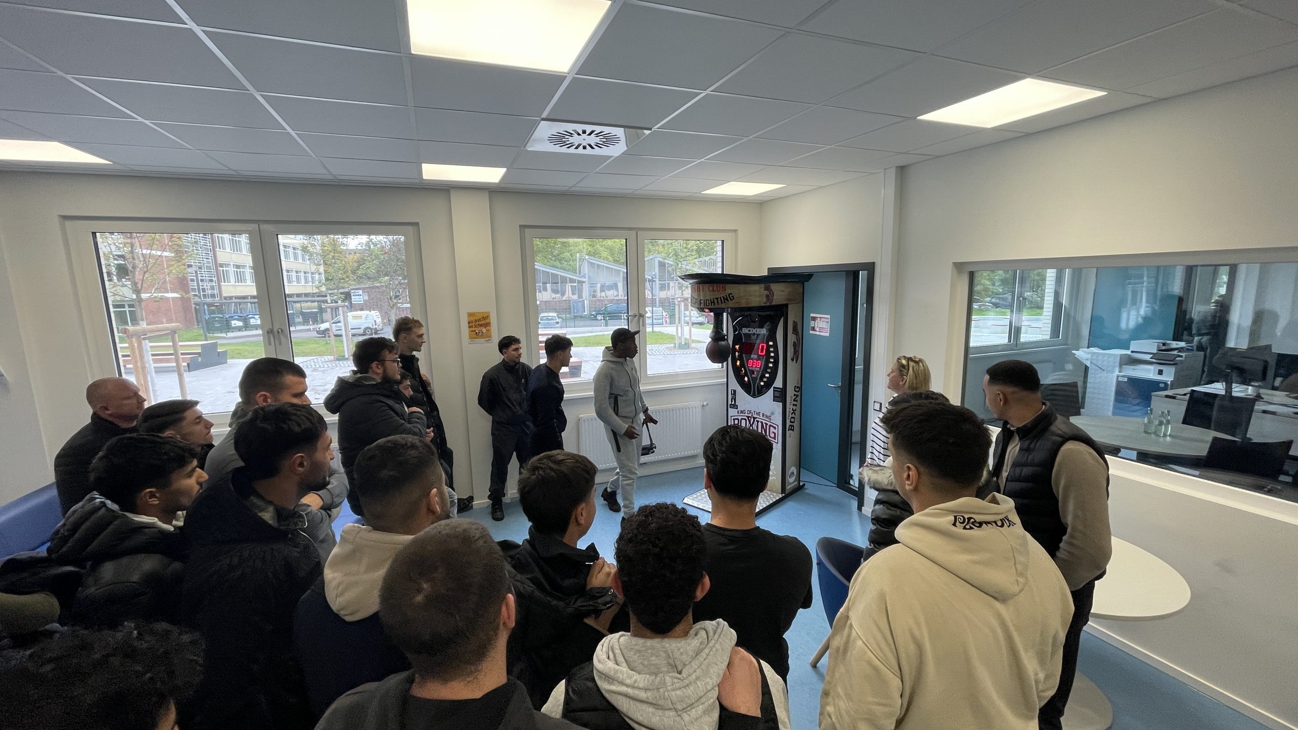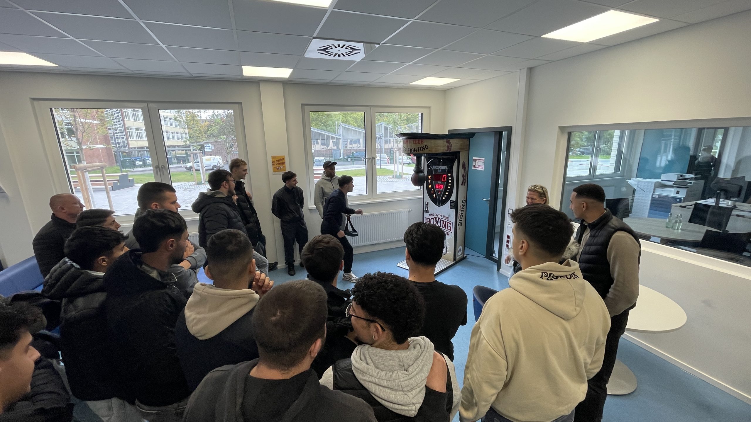 Am Donnerstag, den 09.10., war es endlich soweit: Unser Boxautomat ist an unserem Schulstandort in Deutz eingetroffen! Die Begeisterung unter den Schülern war riesig – die kostenlosen Coins waren blitzschnell aufgebraucht und der Wettkampfgeist sofort geweckt. Mit beeindruckenden Ergebnissen wurde kräftig zugeschlagen – der aktuelle Highscore liegt bei 838! Wer die 800er-Marke knackte, durfte sich über anerkennendes Staunen seiner Mitschüler freuen.Doch eines ist klar: Nicht nur Kraft, sondern auch Technik entscheidet über den Sieg.