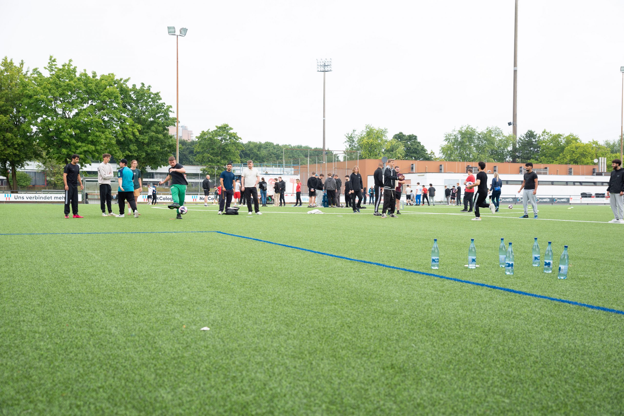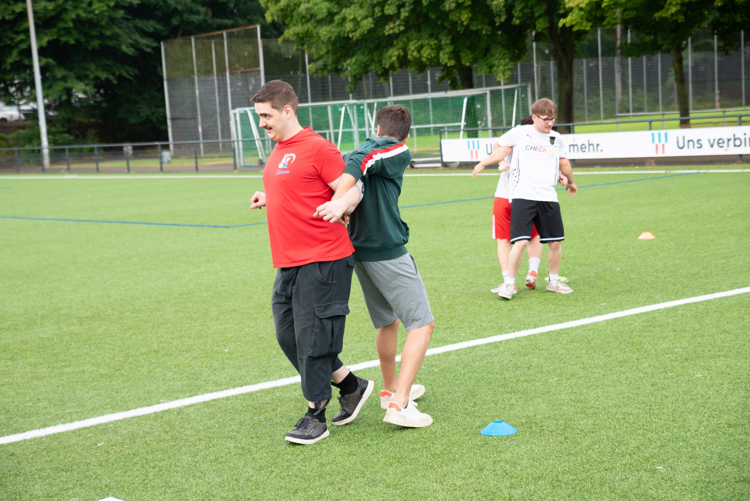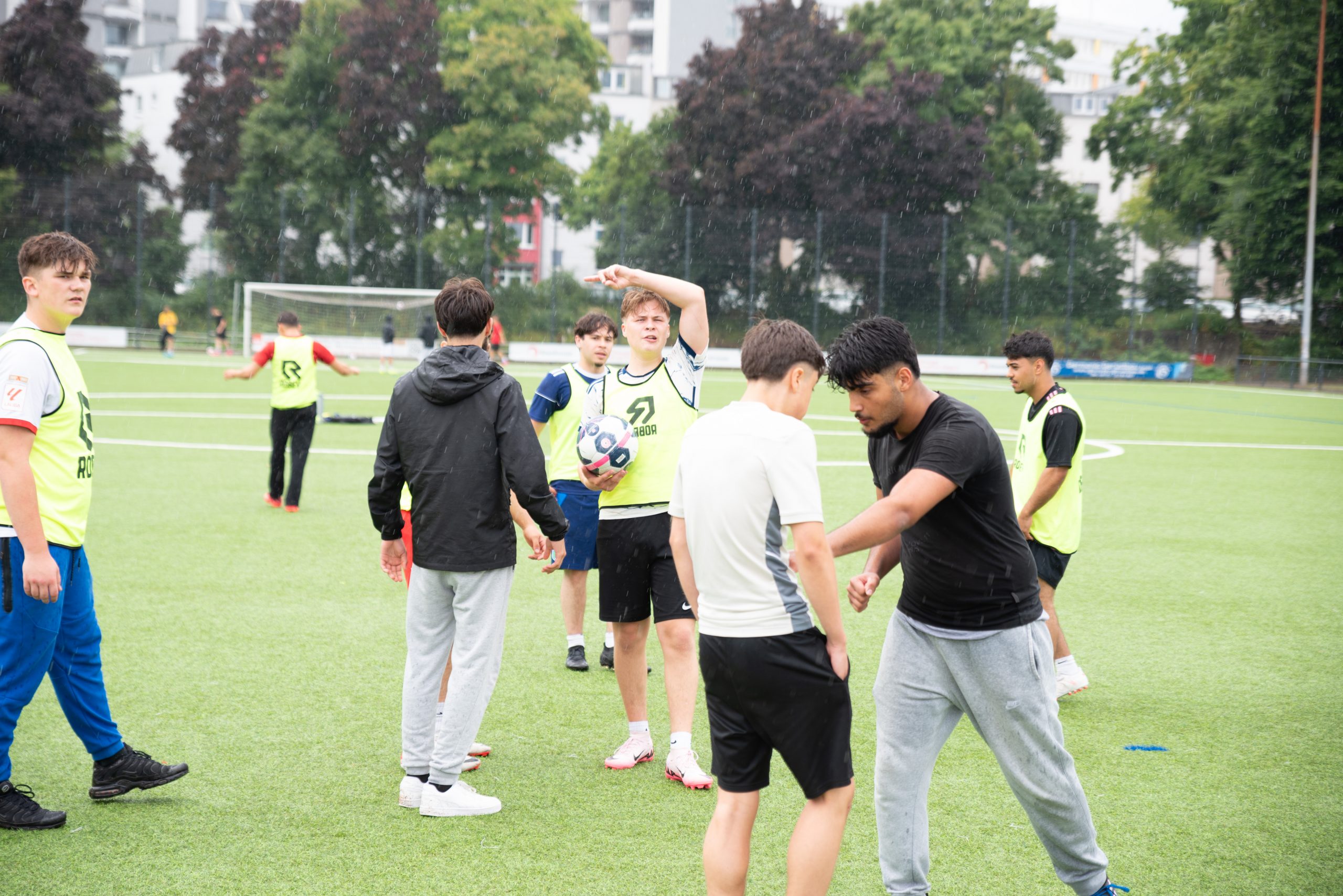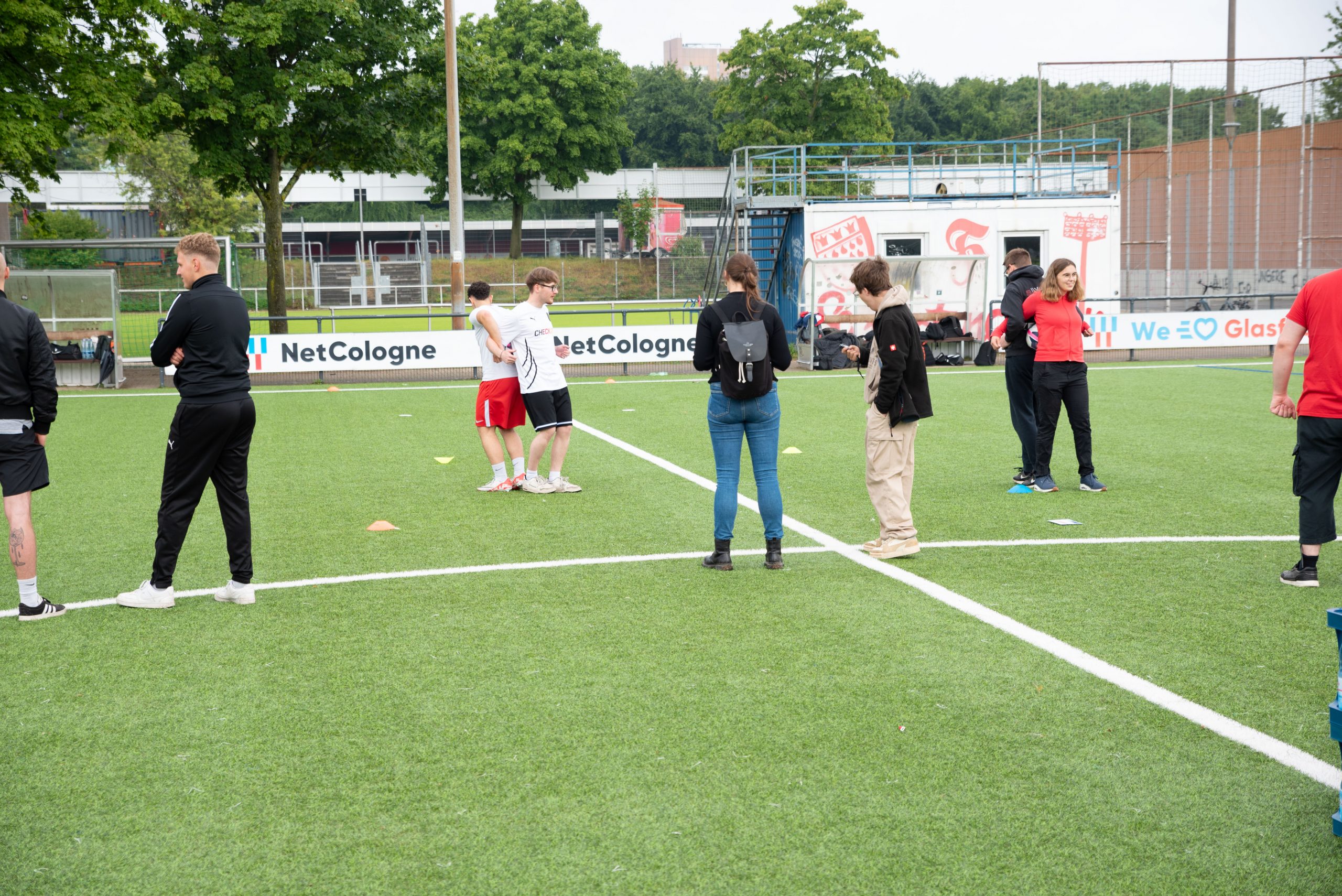 Ein weiterer spannender Lernort war das EL-DE Haus, wo zwei Workshops stattfanden: „Remote Island“ und „Gegen Diskriminierung und Ausgrenzung“. Gerade dieser historische Ort, der einst Sitz der Gestapo war, führte eindrücklich vor Augen, wohin Ausgrenzung, Vorurteile und Intoleranz führen können. Durch interaktive Methoden und intensive Gespräche entstanden Verbindungen zwischen der Vergangenheit und aktuellen gesellschaftlichen Fragen. Dabei lernten die Jugendlichen, Verantwortung für das eigene Handeln zu übernehmen, Diskriminierung zu erkennen und aktiv gegen Ungerechtigkeit einzustehen – eine wichtige Erfahrung, die weit über den Unterricht hinausreicht. Ein Highlight der Woche war die Kooperation mit unserem Courage-Partner Fortuna Köln. Unter dem Motto „Vielfalt, Fairness und Toleranz“ traten gemischte Gruppen aus unterschiedlichen Klassen bei spielerischen Stationen gegeneinander an, sodass jede/r seine und ihre sportlichen Talente unter Beweis stellen konnte. Im Vordergrund stand dabei nicht der Wettbewerb, sondern Teamgeist, Fairplay und Freude am gemeinsamen Erlebnis. Das abschließende Grillen bot Gelegenheit zum Austausch und stärkte das Wir-Gefühl innerhalb der Schulgemeinschaft.