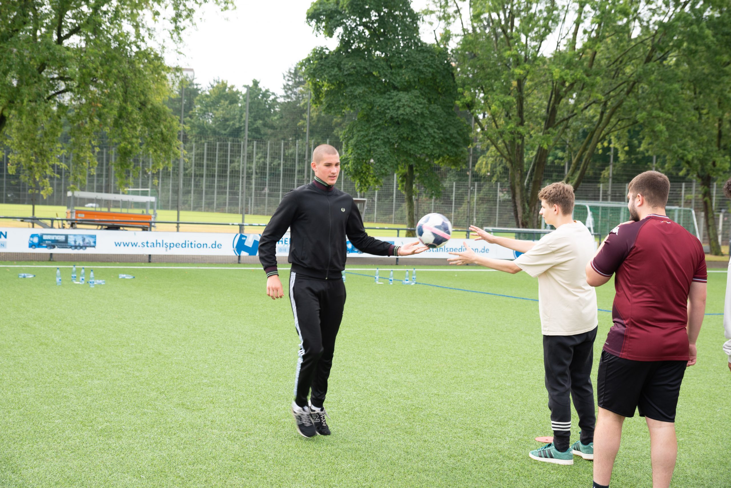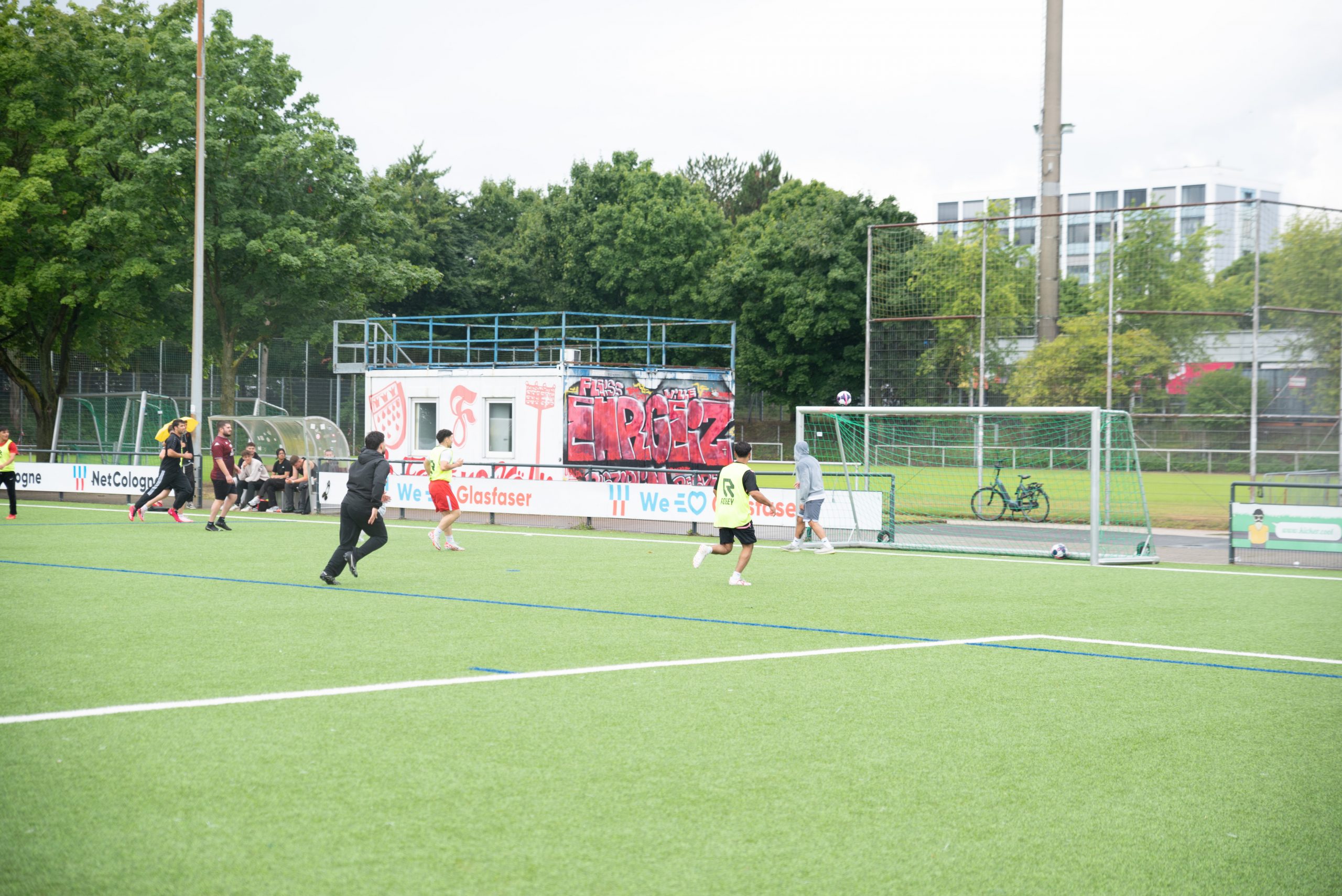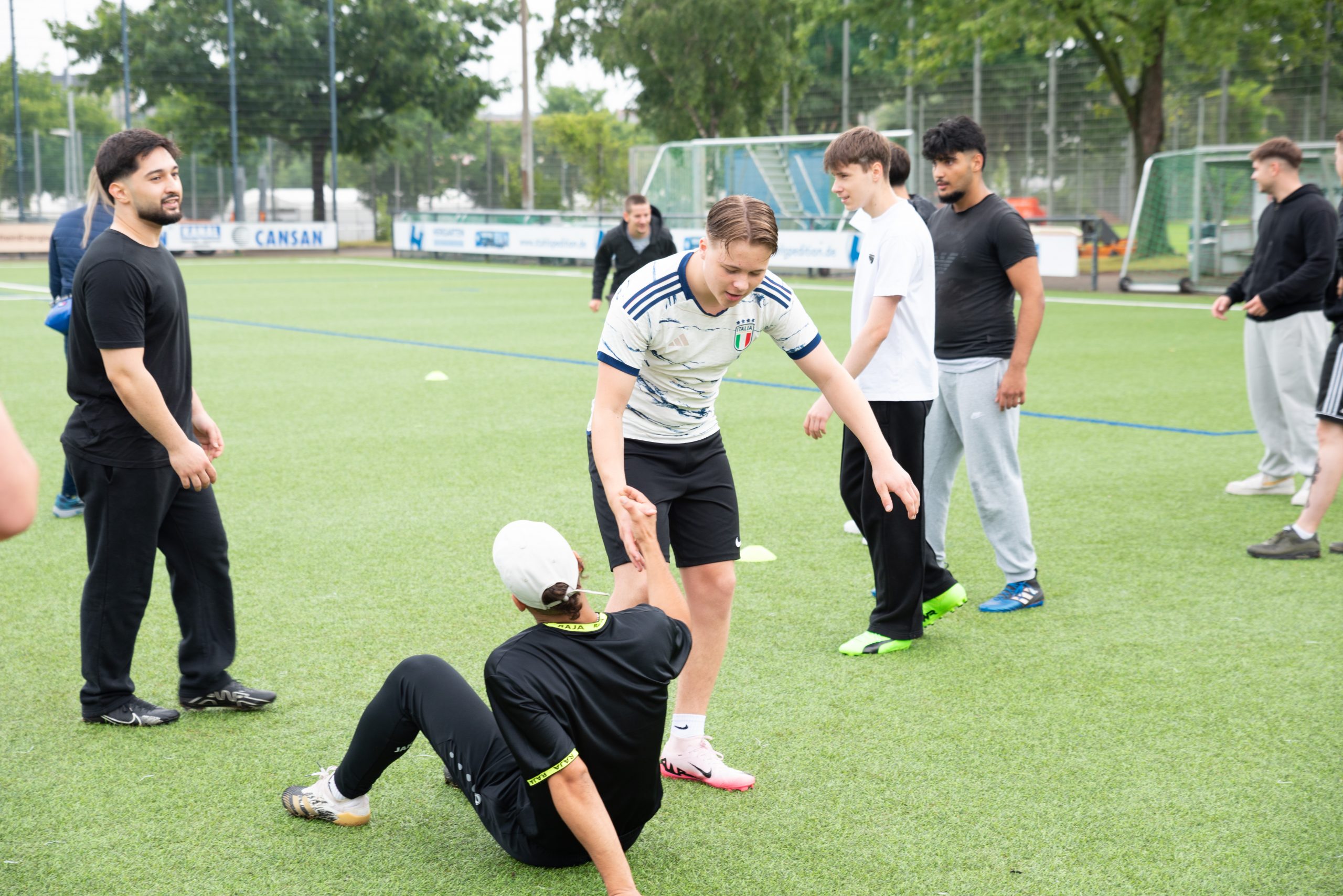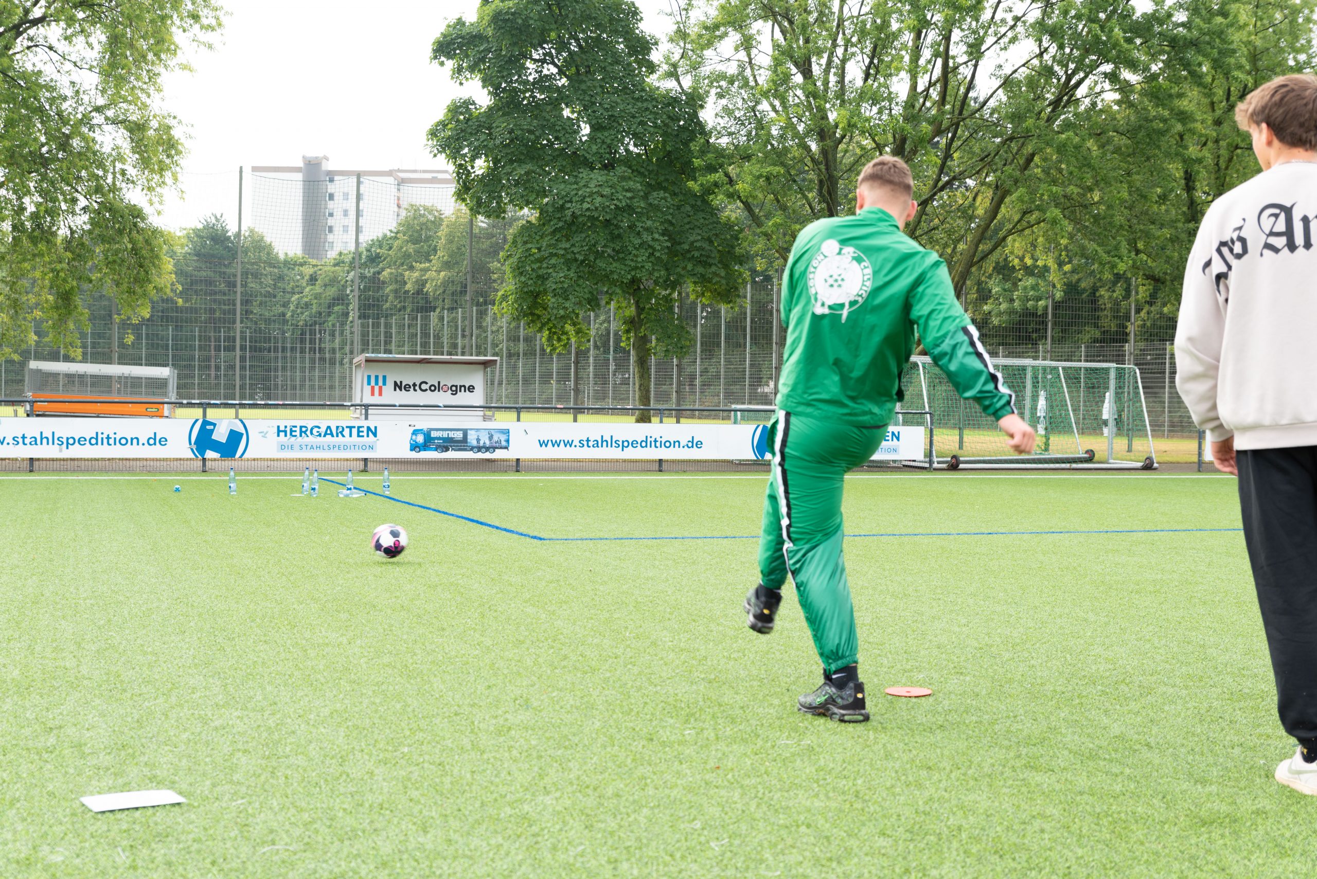 Ein weiterer spannender Lernort war das EL-DE Haus, wo zwei Workshops stattfanden: „Remote Island“ und „Gegen Diskriminierung und Ausgrenzung“. Gerade dieser historische Ort, der einst Sitz der Gestapo war, führte eindrücklich vor Augen, wohin Ausgrenzung, Vorurteile und Intoleranz führen können. Durch interaktive Methoden und intensive Gespräche entstanden Verbindungen zwischen der Vergangenheit und aktuellen gesellschaftlichen Fragen. Dabei lernten die Jugendlichen, Verantwortung für das eigene Handeln zu übernehmen, Diskriminierung zu erkennen und aktiv gegen Ungerechtigkeit einzustehen – eine wichtige Erfahrung, die weit über den Unterricht hinausreicht. Ein Highlight der Woche war die Kooperation mit unserem Courage-Partner Fortuna Köln. Unter dem Motto „Vielfalt, Fairness und Toleranz“ traten gemischte Gruppen aus unterschiedlichen Klassen bei spielerischen Stationen gegeneinander an, sodass jede/r seine und ihre sportlichen Talente unter Beweis stellen konnte. Im Vordergrund stand dabei nicht der Wettbewerb, sondern Teamgeist, Fairplay und Freude am gemeinsamen Erlebnis. Das abschließende Grillen bot Gelegenheit zum Austausch und stärkte das Wir-Gefühl innerhalb der Schulgemeinschaft.